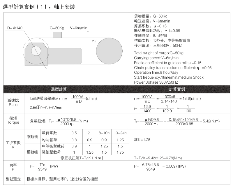 減速機(jī)選型,山藤減速機(jī)選型實(shí)例如下圖: